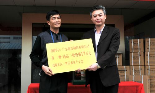 廣東逸舒制藥有限公司董事長黃慶文出差在外,當他接到市僑聯的倡議后,第一時間表達了向玉樹災區(qū)捐款捐物的意愿。他急災區(qū)群眾之所急,立即組織企業(yè)員工加班加點,加量生產大批災區(qū)急需的抗生素等藥品,并特地委托公司總經理黃慶雄參加捐贈儀式捐贈藥品。儀式上,肇慶市僑聯主席黃志堅向廣東逸舒制藥有限公司及其全體員工對積極參與捐贈活動表示衷心的感謝;他指出,災害無情,人間有愛,我們雖遠離玉樹,但與災區(qū)人民感同身受,此刻奉獻一份愛心,盡一份綿薄之力是我們情系災區(qū)最好的表達方式。隨后,黃慶雄總經理代表公司把藥品和善款親自交到市紅十字會主任徐永飛手中,為感謝廣東逸舒制藥有限公司的善舉,市紅十字會也回贈了“紅十字愛心單位”牌匾。