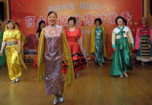 中新網(wǎng)5月4日電 據(jù)蘇州市僑辦消息,4月26日,江蘇省蘇州市何山社區(qū)僑胞藝術(shù)團(tuán)為居民們獻(xiàn)上了一場別開生面的“喜迎世博 同慶五一”世博時(shí)裝秀活動。