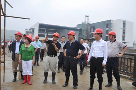 在四川省僑聯(lián)黨組書記周敏謙,中共綿陽市委副書記、市長曾萬明,中鐵二局集團(tuán)公司黨委書記鄧元發(fā)等人的陪同下,林軍、喬衛(wèi)一行冒著雨后的泥濘深入工地,詳細(xì)察看了教學(xué)樓、學(xué)生宿舍、食堂、實(shí)驗(yàn)樓和行政樓等建筑的施工情況。